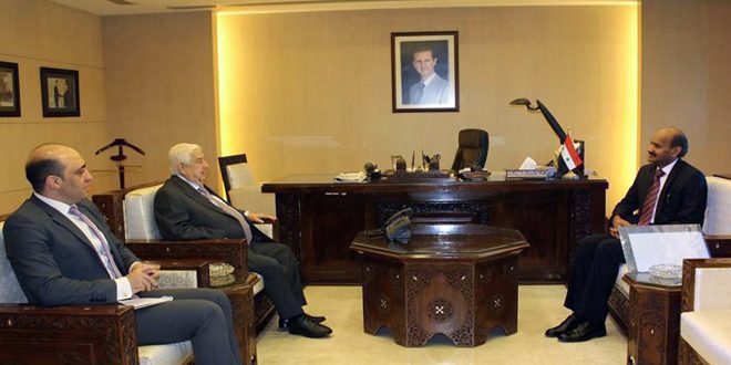 تسلم نائب رئيس مجلس الوزراء وزير الخارجية والمغتربين وليد المعلم اليوم من الدكتور حفظ الرحمن سفير الهند نسخة من أوراق اعتماده سفيرا مفوضا وفوق العادة للهند لدى الجمهورية العربية السورية.