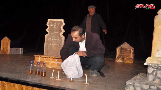 العرض الذي قدم على خشبة ثقافي الحسكة اليوم ضمن فعاليات اليوم الثالث لمهرجان الحسكة المسرحي استمد المخرج عبد الله الزاهد نصوصه من الكاتب المسرحي وليد إخلاصي يظهر من جديد دور المسرح التوعوي وعلاقته الوطيدة بمواضيع الصور والمشاهدات الحياتية التي تمثل جانباً من طباع البشر والصراع الأبدي بين الخير والشر.