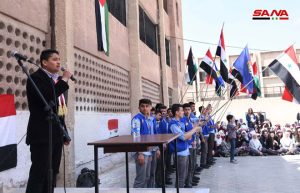 رئيس الوحدة النقابية في المدرسة سامر فواز الغوطاني عبر في كلمة له بإسم الكادر الإداري والطلاب عن سعادته بما قدمه طلاب المدرسة من أعمال قيمة رغم ما تعرضت له من قذائف الإرهاب لافتاً إلى أن دماء الشهداء وانتصارات الجيش العربي السوري لونت عيون الطلبة وأنارت لهم طرق حب الحياة والرغبة بطي صفحة أليمة عاشوا تفاصيلها وانطلقوا يعملون بكل طاقاتهم لتقديم الأفضل.