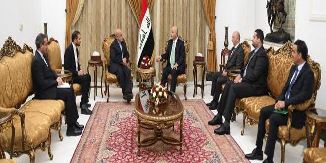 وأوضح بيان صادر عن الرئاسة العراقية تلقت سانا نسخة منه أن صالح وخلال استقباله في بغداد اليوم سفير إيران لدى العراق ايرج مسجدي شدد “على الأهمية التي يوليها العراق لتعزيز علاقاته الثنائية مع إيران منطلقا من الوشائج الاجتماعية والثقافية والمصالح المشتركة الأمنية والاقتصادية”.