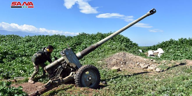 في إطار ردها على خروقات التنظيمات الإرهابية المتكررة لاتفاق منطقة خفض التصعيد نفذت وحدات من الجيش العربي السوري رمايات نارية طالت محاور تسلل ونقاط تحصن مجموعات إرهابية من تنظيم جبهة النصرة بريف حماة الشمالي وكبدتهم خسائر بالأفراد والعتاد.