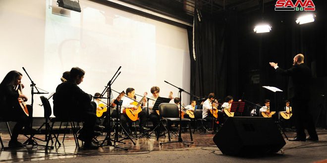 ضمن طقس أوركسترالي عاش جمهور مجمع دمر الثقافي أجواء من الحلم مع تراقص أنغام تضج بالحياة من بين أنامل فرقة معهد غيتارات صلحي الوادي بقيادة الموسيقي يزن الجاجة.