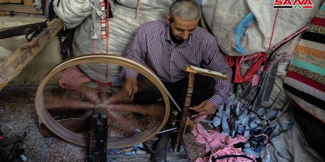 نول خشبي قديم وأنامل سحرية تنسج بإتقان مشغولات التراث السوري