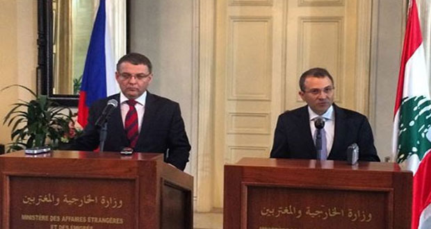 ونوه باسيل بمساهمات الجمهورية التشيكية عبر مشاريع الاتحاد الاوروبي والجهود الانسانية في دعم جهود لبنان في تحمل تداعيات الازمة في سورية عليه وقال “شددنا على ضرورة اقتلاع التهديد المتمثل بالتنظيمات الارهابية كـ داعش و جبهة النصرة من جذوره وليس فقط احتواوءه لئلا ينتشر في المنطقة وباقي دول العالم لأن التهديدات التي تقف على عتبة بابنا ستدق باب أوروبا قريبا”.