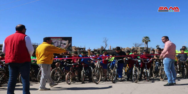 احتفاء بالذكرى الثالثة والسبعين لجلاء المستعمر الفرنسي عن أرض الوطن أقامت مديرية التربية بدير الزور بالتعاون مع اللجنة التنفيذية للاتحاد الرياضي سباقا كرنفاليا للدراجات بمشاركة150 تلميذا من الحلقة الأولى للتعليم الأساسي.