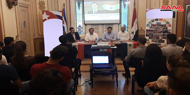 وأشار الطلبة خلال المؤتمر السنوي لفرع كوبا للاتحاد الوطني لطلبة سورية اليوم تحت شعار (بالعلم والمعرفة والعمل نبني سورية الوطن بقيادة سيادة الرئيس بشار الأسد) إلى أنهم يسعون دائما من خلال نشاطاتهم للتعريف بتاريخ وثقافة سورية ودورها الحضاري وإظهار حقيقة ما يجري فيها بعيدا عن التضليل الإعلامي الذي تتعمده وسائل الإعلام المغرضة.