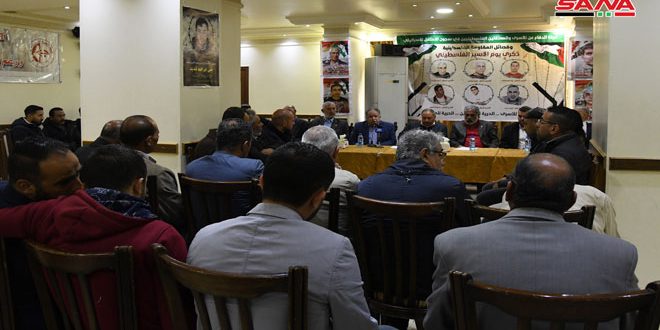 نظمت لجنة الدفاع عن الأسرى والمعتقلين الفلسطينيين والفصائل الفلسطينية بدمشق اليوم لقاء تضامنيا مع الأسرى الفلسطينيين في معتقلات الاحتلال الإسرائيلي وذلك بمقر جمعية خريجي المعاهد التجارية بدمشق.