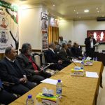 وقال الأمين العام لجبهة النضال الشعبي الفلسطيني خالد عبد المجيد في كلمته: هناك مخاطر حقيقية على قضيتنا الفلسطينية من خلال (صفقة القرن) التي تحاول الولايات المتحدة تمريرها وهذا يتطلب وحدة الموقف الوطني الفلسطيني موجها التحية لسورية وللأسرى داخل معتقلات الاحتلال.
