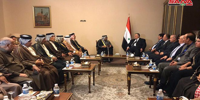 بدورهم نوه شيوخ العشائر العراقية بانتصارات الجيش العربي السوري على عصابات الموت والإرهاب وصمود سورية بوجه المؤامرة الكونية الكبرى مؤكدين وقوفهم المطلق مع سورية حتى تحقيق النصر النهائي على الإرهاب.