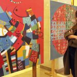 المعرض الذي ضم 25 لوحة جدارية بقياس (250 * 150) سم وبتقنية الاكريليك جاء غنياً من حيث التكوينات الفنية المتماسكة والرصينة والمشحونة بكم بكبير من التفاصيل ما بين القطوع الهندسية والحروف الراقصة والألوان المتناغمة.
