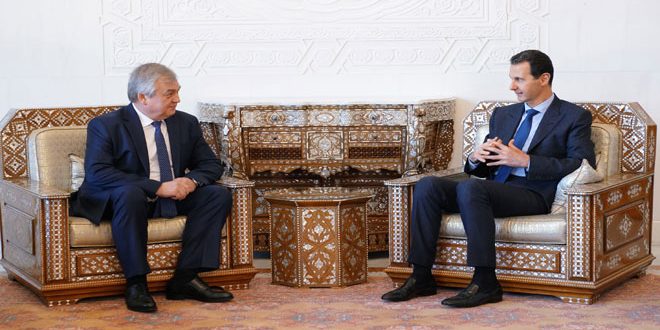 استقبل السيد الرئيس بشار الأسد اليوم المبعوث الخاص للرئيس الروسي فلاديمير بوتين إلى سورية ألكسندر لافرنتييف ونائب وزير الخارجية الروسي سيرغي فيرشينين والوفد المرافق.