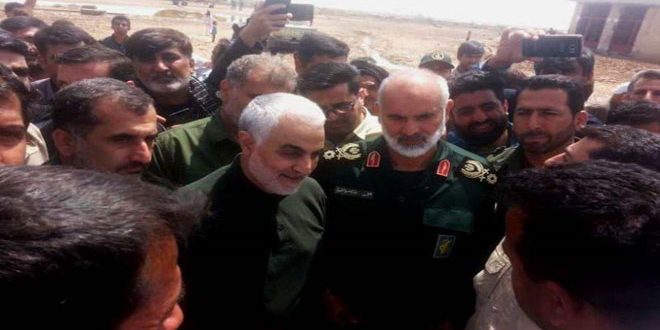 أكد قائد فيلق القدس التابع للحرس الثوري الإيراني اللواء قاسم سليماني وقوف الحرس الثوري والقوات المسلحة في البلاد إلى جانب الشعب الإيراني في مواجهة السيول التي تجتاح بعض المحافظات الإيرانية.