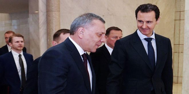 وبحث الرئيس الأسد مع بوريسوف الآليات العملية لتجاوز كافة العوائق إن كانت الإدارية منها أو تلك الناتجة عن العقوبات التي تفرضها الدول المعادية للشعب السوري على سورية بالإضافة إلى توسيع آفاق التعاون لتشمل قطاعات جديدة بما يعود بالمنفعة المتبادلة على شعبي البلدين الصديقين.