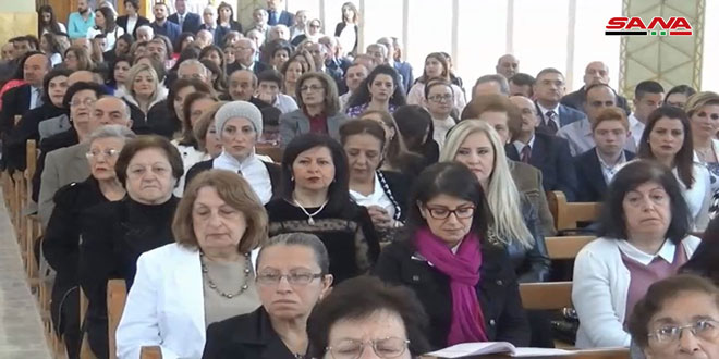 بدوره قال القس هاروت سليميان رئيس طائفة الأرمن البروتستانت في سورية: نحتفل بعيد الفصح المجيد ونعيش فرحة الانتصار بعد أن مر عامان على تحرير حلب من الإرهاب حيث عادت الفرحة إلى قلوبنا بعودة الحياة الاجتماعية والمدنية والكنسية ونتمنى في هذا اليوم أن تتعافى سورية وتعود أقوى مما كانت وتعيش الحياة التي تليق بها بهمة أبطال الجيش العربي السوري.