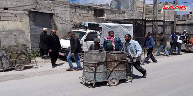 وأوضح عضو المكتب التنفيذي عن قطاع الصحة والإغاثة صالح سويد في تصريح لمراسل سانا اليوم أن حملة النظافة الطوعية تأتي في إطار الحرص على النظافة وتحسين واقع الخدمة المقدمة للمواطنين ومساعدة الوحدة الإدارية في جمع وترحيل القمامة نظراً لكثافة السكان في التجمع.