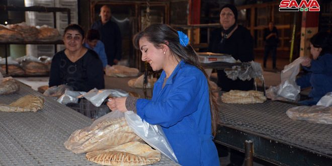وفي حلب واصلت المخابز عملها على مدار الأربع والعشرين ساعة خلال أيام العطلة لتامين رغيف الخبز للمواطن وبكامل طاقتها الإنتاجية والتي تراوحت بين 285 و 315 طنا من الخبز يوميا في مناطق حلب والمدينة.