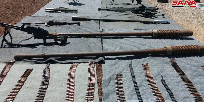 عثرت الجهات المختصة خلال استكمال أعمال تأمين المناطق المحررة من الإرهاب على كميات من الأسلحة والذخيرة بعضها أمريكي وإسرائيلي الصنع من مخلفات الإرهابيين بريف القنيطرة الجنوبي.