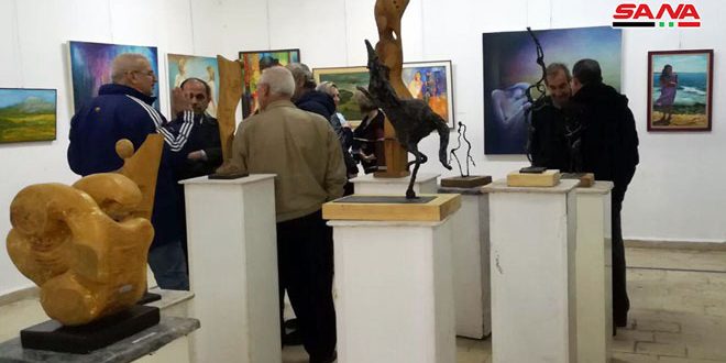 بمشاركة 24 فنانا تشكيليا ونحاتا من حمص نظم اتحاد الفنانين التشكيليين معرضه السنوي احتفالا بعيد الجلاء بعنوان “تحية إلى نيسان”.