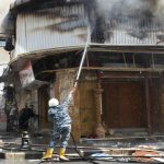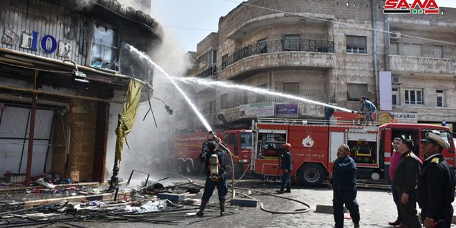 أخمد عناصر فوج إطفاء حماة اليوم حريقاً اندلع في محال تجارية بالقرب من ثانوية السيدة عائشة في سوق ابن رشد التجاري بالمدينة.
