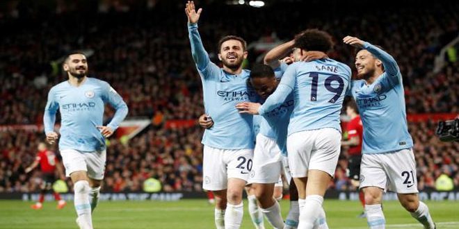 قطع مانشستر سيتي خطوة كبيرة نحو الاحتفاظ بلقب الدوري الإنكليزي الممتاز بكرة القدم بعد تغلبه على غريمه مانشستر يونايتد بهدفين دون مقابل ليعود للصدارة.