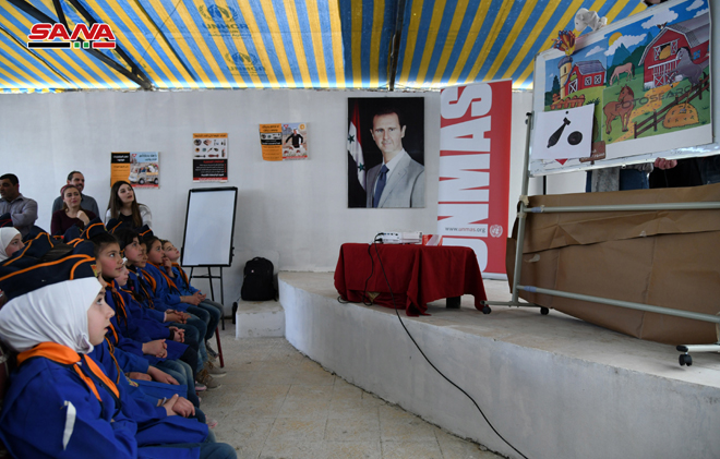 جلسة توعوية بمخاطر الألغام والمخلفات المتفجرة في حرستا
