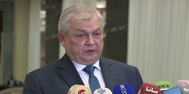 وقال لافرينتييف في تصريح صحفي اليوم في العاصمة الكازاخية نور سلطان على هامش الجولة الثانية عشرة من محادثات أستانا حول تسوية الأزمة في سورية: تم بحث الوضع في سورية بشكل عام وخاصة في محافظة إدلب حيث يسيطر تنظيم جبهة النصرة الإرهابي على معظم مساحة المحافظة وكان هناك تصميم واضح وكامل على مواصلة مكافحة الإرهاب.