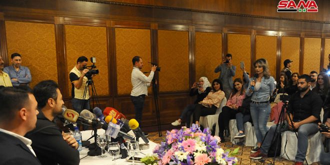 الفنان أسود عقد مؤتمرا صحفيا في فندق شيراتون بدمشق اليوم بدعوة من مؤسسة الوعد الصادق مبينا أنه سيقيم حفلا فنيا غدا يخصص ريعه لأسر الشهداء وجرحى الجيش العربي السوري والمساهمة في تركيب الأطراف الصناعية لهم.