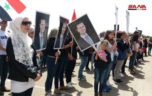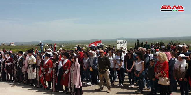 وأشار رئيس الجمعية الخيرية الشركسية رضوان بردوقة إلى أن التاريخ والجغرافيا ينطقان بعروبة وسورية الجولان المحتل الذي سيعود إلى كنف الدولة السورية بفضل تلاحم الجيش والشعب والقيادة.