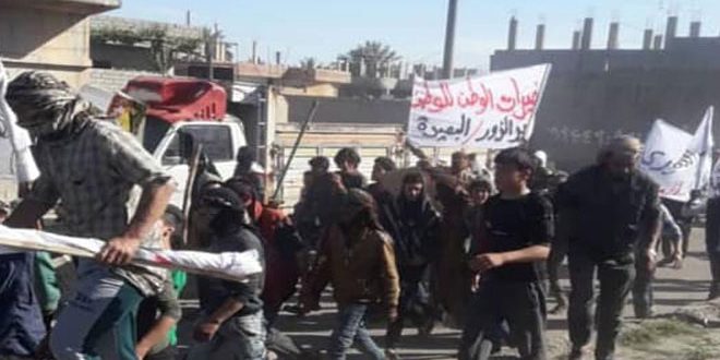 وأفادت مصادر أهلية بأن “الاحتجاجات ضد ممارسات ميليشيا “قسد” المدعومة من قوات الاحتلال الأمريكية تجددت اليوم في الريف الشمالي لدير الزور حيث شهدت مدينة البصيرة خروج الأهالي بمظاهرات احتجاجية مطالبة بخروج ميليشيا “قسد” من قراهم ومن كامل مناطق انتشارها حيث انتشرت الفوضى وحالات الخطف والقتل واحتكار النفط من قبل هذه الميليشيات والشركات التي تتعامل معها”.
