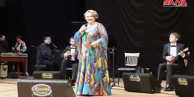 وأدت “كريجينا” الملقبة بفنانة الشعب الروسي خلال الحفل الذي أقيم بالتعاون بين وزارة الثقافة وسفارة جمهورية روسيا الاتحادية بدمشق بمناسبة مرور 75 عاما على إقامة العلاقات الدبلوماسية بين البلدين أغاني من التراث الغنائي الروسي أمثال ” أنا أطير فوق روسيا ” و” البحيرات الزرقاء” و” أمسيات موسكو البيضاء ” وتخللها عزف منفرد لمقطوعات شهيرة على آلتي البلالايكا و الدومرا.