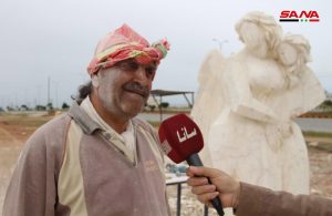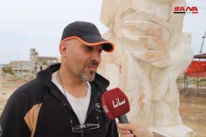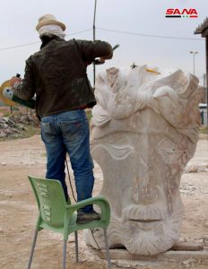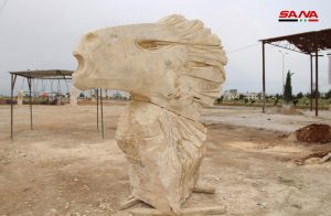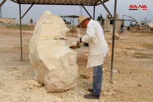 عشرة مجسمات حجرية نحتية تشكيلية تجاوز ارتفاع بعضها الـ3 أمتار عرضها اليوم نخبة من الفنانين المشاركين مع انتهاء فعاليات ملتقى النحت الأول “من أجل الإبداع والسلام” بحلب.