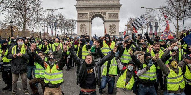احتشد مجددا اليوم محتجو حركة السترات الصفراء في باريس وستراسبورغ وعدد من المدن الفرنسية احتجاجا على سياسات الرئيس الفرنسي إيمانويل ماكرون الاقتصادية ورفضا للاجراءات التي اعلن عنها مؤخرا لمعالجة الأزمة في فرنسا.