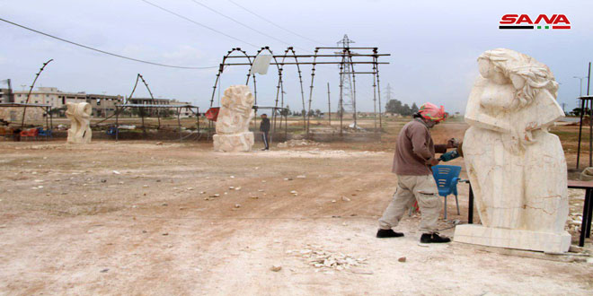 عشرة مجسمات نحتية ثمرة ملتقى النحت الأول بالمدينة الصناعية بحلب