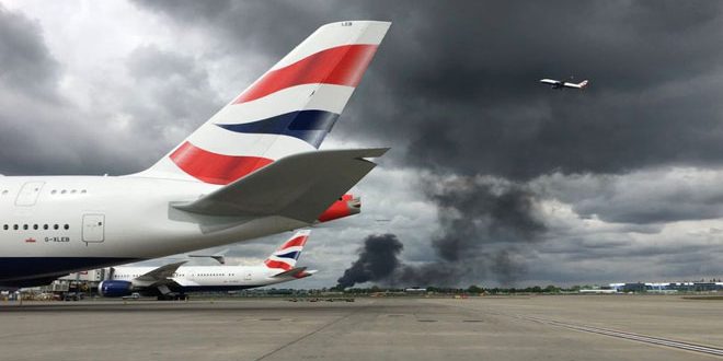 وقعت انفجارات ضخمة أعقبها حريق كبير اليوم بالقرب من مطار هيثرو الدولي غرب العاصمة البريطانية لندن.
