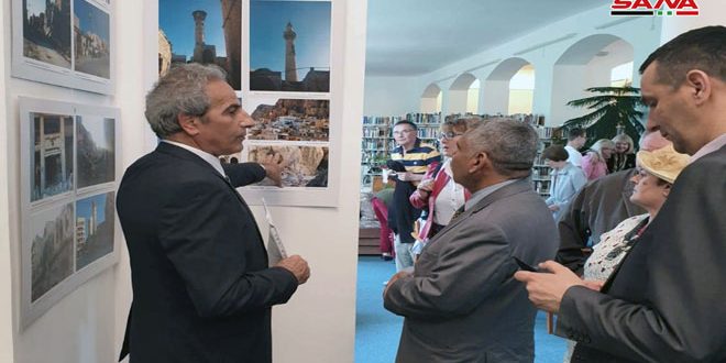 وضم المعرض الذي أقامته عائلة المغترب السوري الدكتور منذر فطيمي تحت رعاية مكتبة فرشاغي فرنس بمدينة صولنوك صورا عن الدمار الذي ألحقته التنظيمات الإرهابية في سورية.