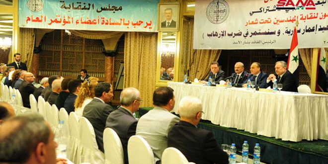 حضر أعمال المؤتمر العام السنوي الثاني والأربعين لنقابة المهندسين وزير الموارد المائية المهندس حسين عرنوس ووزير الأشغال العامة والإسكان المهندس سهيل عبد اللطيف ونقيب المهندسين الدكتور المهندس غياث القطيني.