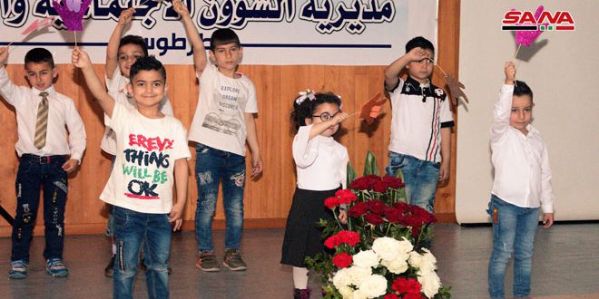 بمناسبة أسبوع الأصم العربي أقامت مديرية الشؤون الاجتماعية والعمل بطرطوس بالتعاون مع مؤسسة لوريل التنموية اليوم احتفالية لأطفال معهد الإعاقة السمعية التابع للمديرية تضمنت أنشطة فنية وأشغالا يدوية.