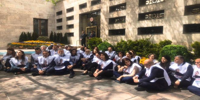نفذ عدد من نواب البرلمان عن حزب الشعوب الديمقراطي التركي اليوم اعتصاما أمام قاعة الاجتماعات الرئيسية للبرلمان في انقرة وذلك تعبيرا عن تضامنهم مع أعضاء البرلمان المضربين عن الطعام في سجون ومعتقلات النظام التركي.
