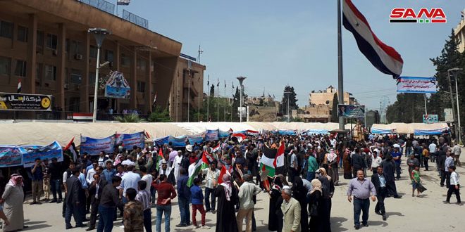 جدد أبناء محافظة الحسكة وقوفهم الى جانب الجيش العربي السوري في حربه على الارهاب وانتماءهم الى وطنهم سورية ورفضهم المخططات الانفصالية والانعزالية التي تديرها الولايات المتحدة ومن خلفها الصهيونية العالمية للنيل من وحدة سورية تحت أي مسمى.