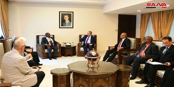 استقبل الدكتور فيصل المقداد نائب وزير الخارجية والمغتربين امبو ماسيمولا مدير عام في وزارة الدفاع رئيس رابطة الأسرى القدامى في جنوب أفريقيا والوفد المرافق له.