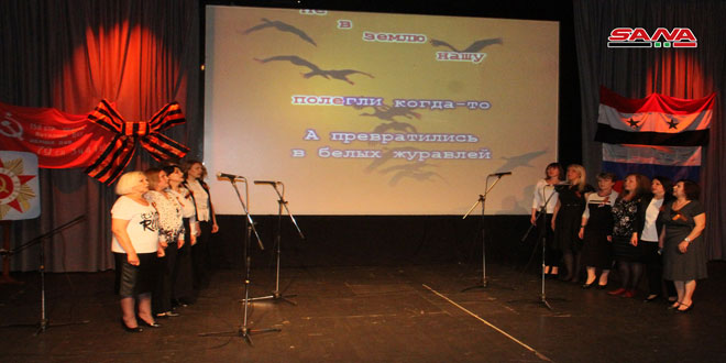 أقامت الجالية الروسية في سورية بالتعاون مع مديرية التربية في طرطوس حفلا تضمن عروضا رياضية وفنية ومجموعة من الأغاني باللغة الروسية وذلك في المركز الثقافي العربي بالمدينة.