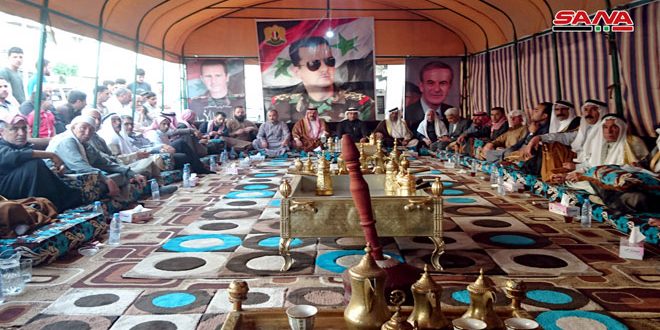 وفي تصريح لمراسل سانا قال الشيخ قدور عبد الرزاق الحسين شيخ قبيلة البكارة “ندين ونستنكر أي تدخل أمريكي أو أجنبي في سورية ونحن مع وحدة الأراضي السورية وستبقى سورية واحدة موحدة يحميها الجيش العربي السوري”.