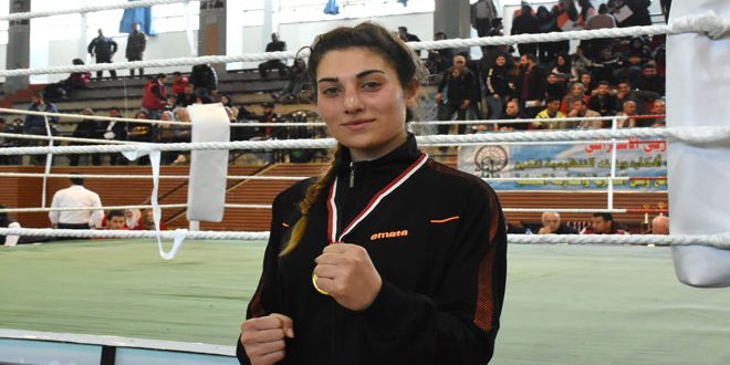 رغم أنها بدأت بممارسة رياضة الملاكمة العام الماضي إلا أن اللاعبة إنجل ماعود استطاعت أن تحقق ميدالية ذهبية في بطولة الجمهورية والتي أقيمت مطلع الشهر الماضي في حماة.