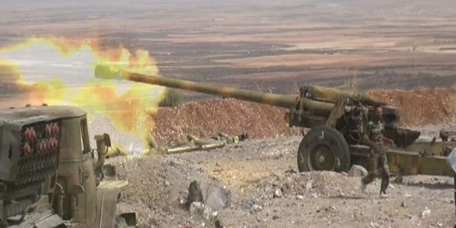 نفذت وحدات من الجيش العربي السوري رمايات نارية على محاور تسلل ونقاط تحصن المجموعات الإرهابية في عمق مناطق انتشارها على جانبي الحدود الإدارية لريفي حماة وإدلب وذلك رداً على خرقها المتكرر لاتفاق منطقة خفض التصعيد.