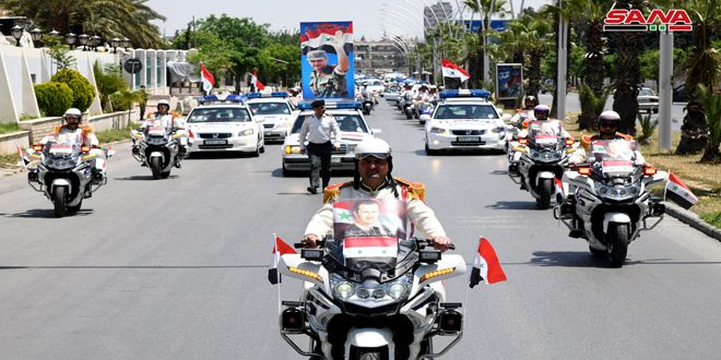 نظمت الإدارة العامة للمرور في وزارة الداخلية اليوم عرضاً كرنفالياً بمشاركة دراجات وسيارات شرطة المرور أمام مبنى الإدارة في باب مصلى بدمشق وذلك بمناسبة يوم المرور العالمي.