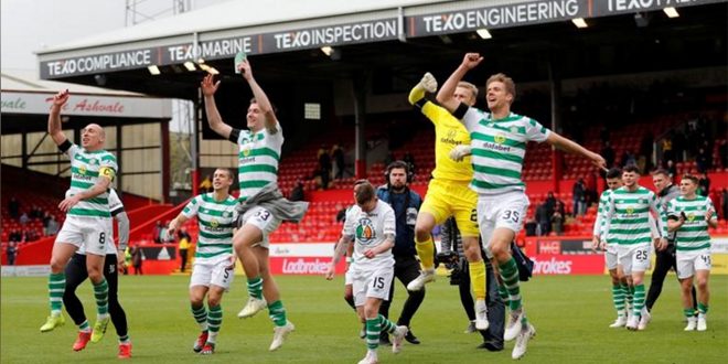 توّج فريق سيلتيك بلقبه الثامن على التوالي في الدوري الاسكتلندي لكرة القدم بعد فوزه اليوم بـ3 أهداف دون مقابل على فريق ابردين.