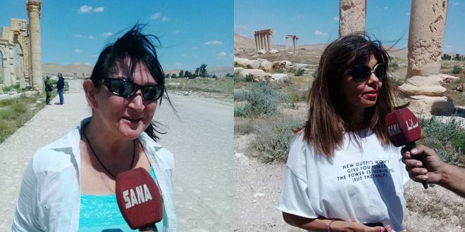 وفي تصريحات لمراسل سانا قالت فريدة وهي مهندسة معمارية من الهند وتحمل الجنسية البريطانية: “ما فعله أعداء التاريخ والحضارة بتخريبهم أهم المعالم الأثرية العريقة في تدمر عار بحق الإنسانية جمعاء” معربة عن إعجابها بالفن والزخرفة والبناء الهندسي الفريد من نوعه الذي تتميز به تدمر إلى جانب طبيعة المدينة الجميلة التي ستبقى في ذاكرتها مدى الحياة.