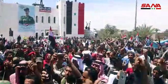 وسط احتفال جماهيري أقيم في ناحية الجلاء بريف البوكمال الغربي تمت اليوم عودة 3800 مواطن إلى مدنهم وقراهم المحررة من الإرهاب بريف دير الزور الجنوبي الشرقي.