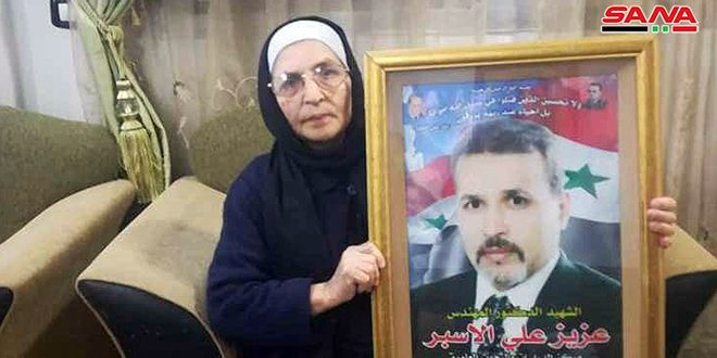 ورغم لوعة الفراق تؤكد والدة الشهيد الدكتور عزيز اسبر مدير مركز البحوث العلمية في مدينة مصياف الذي استشهد باستهداف سيارته في آب الماضي أن دماء الشهداء لن تذهب هدرا راجية من الله حماية رجال الجيش العربي السوري وتسديد خطاهم وعودة الأمن والأمان لسورية.