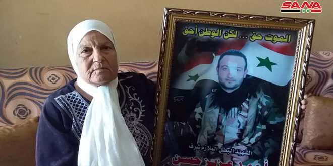 وتعود والدة الشهيد بالذاكرة أيضا.. كان يحدثها عن بطولاته مع رفاق السلاح في تصديهم للمجموعات الإرهابية وتدعو لهم بالنصر والعودة سالمين مشيرة الى أن هذه الحرب التي شنت على سورية تهدف لإسقاطها لكنها فشلت وانهزموا وبقيت سورية قوية بقائدها وجيشها وشعبها.